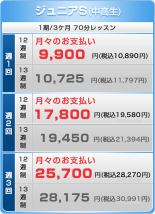 ※「ジュニアS」の複数受講も毎月2,000円(税込2,200円)割引の対象となります。