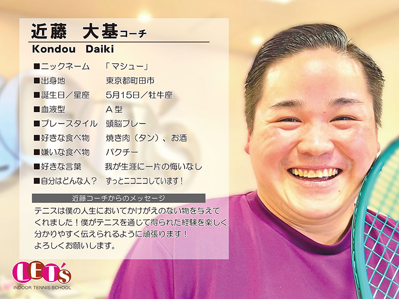 当テニスクラブのコーチ陣は技術が確かなことはもちろん、プレイだけでなく皆様に喜んでいただくために、研修制度によってしっかりと指導されたメンバーです。